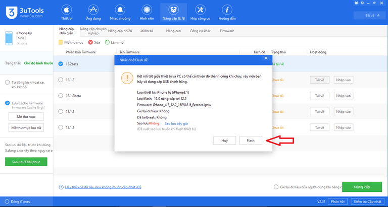 B4: Một bảng thông báo hiện ra bạn tick chọn vào “Flash” để tiến hành nâng cấp