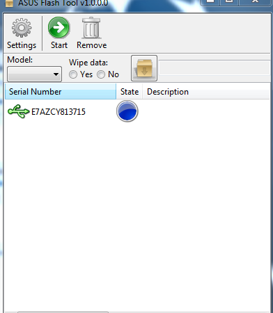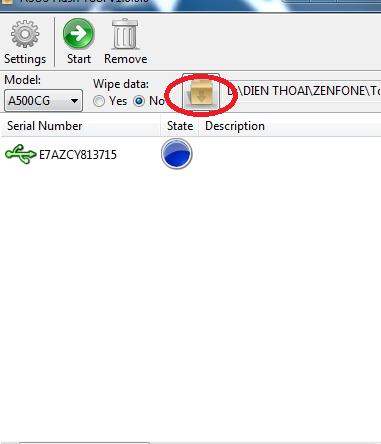 c/ Kết nối cáp điện thoại với máy tính, chạy tool ASUS Flash Tool