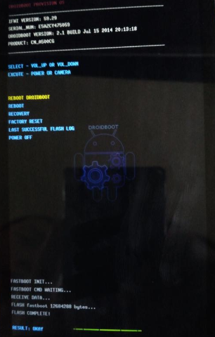 b/ Trên zenfone đưa về chế độ DROIDBOOT bằng cách: Nhấn giữ Power + Vol Up