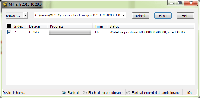 - Mở MiFlash trong đường dẫn vừa cài đặt C:\Program Files (x86)\Xiaomi\MiPhone