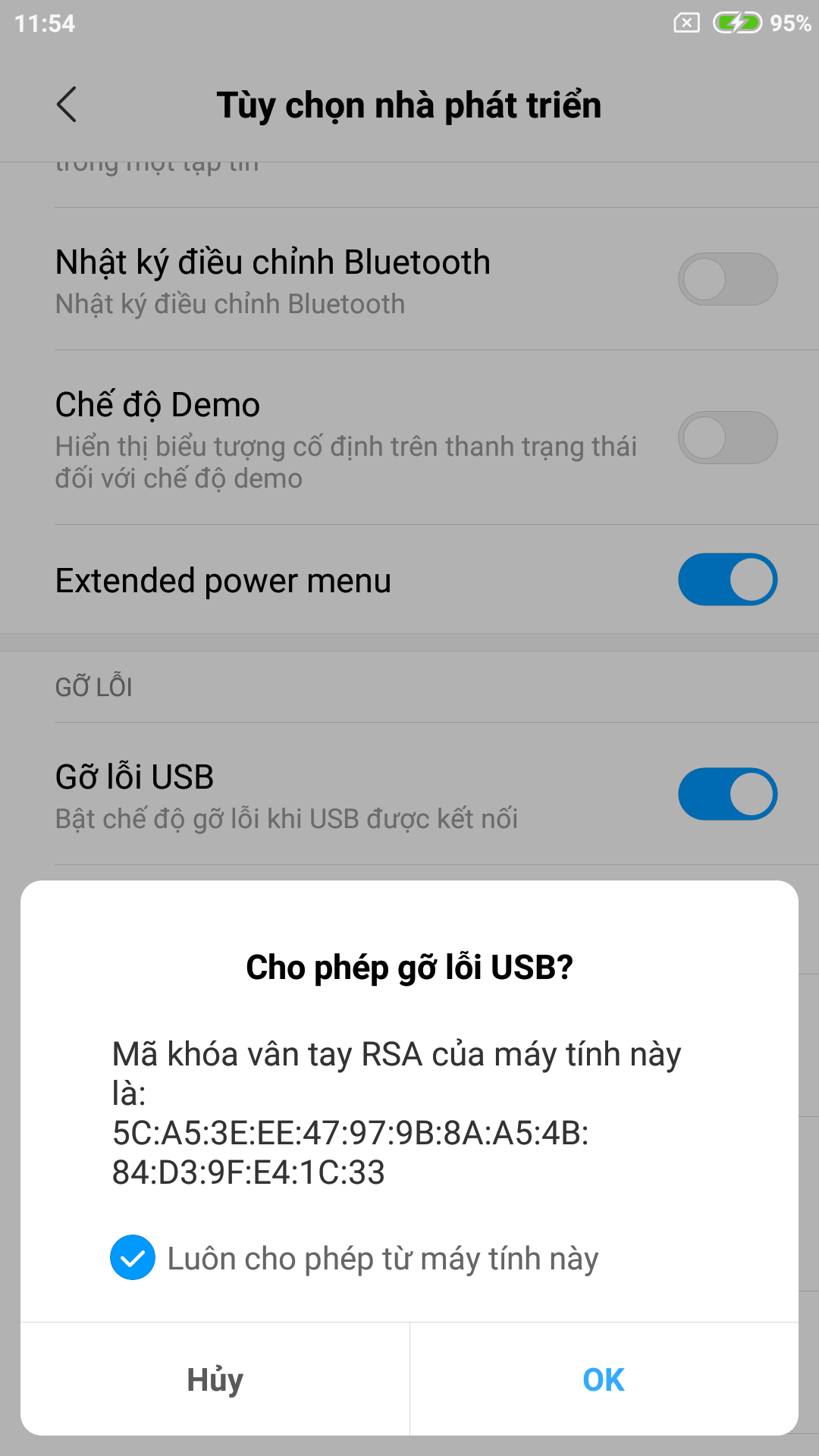 - Cắm vào PC nếu thấy có thông báo Cho phép gỡ lỗi USB thì chọn OK
