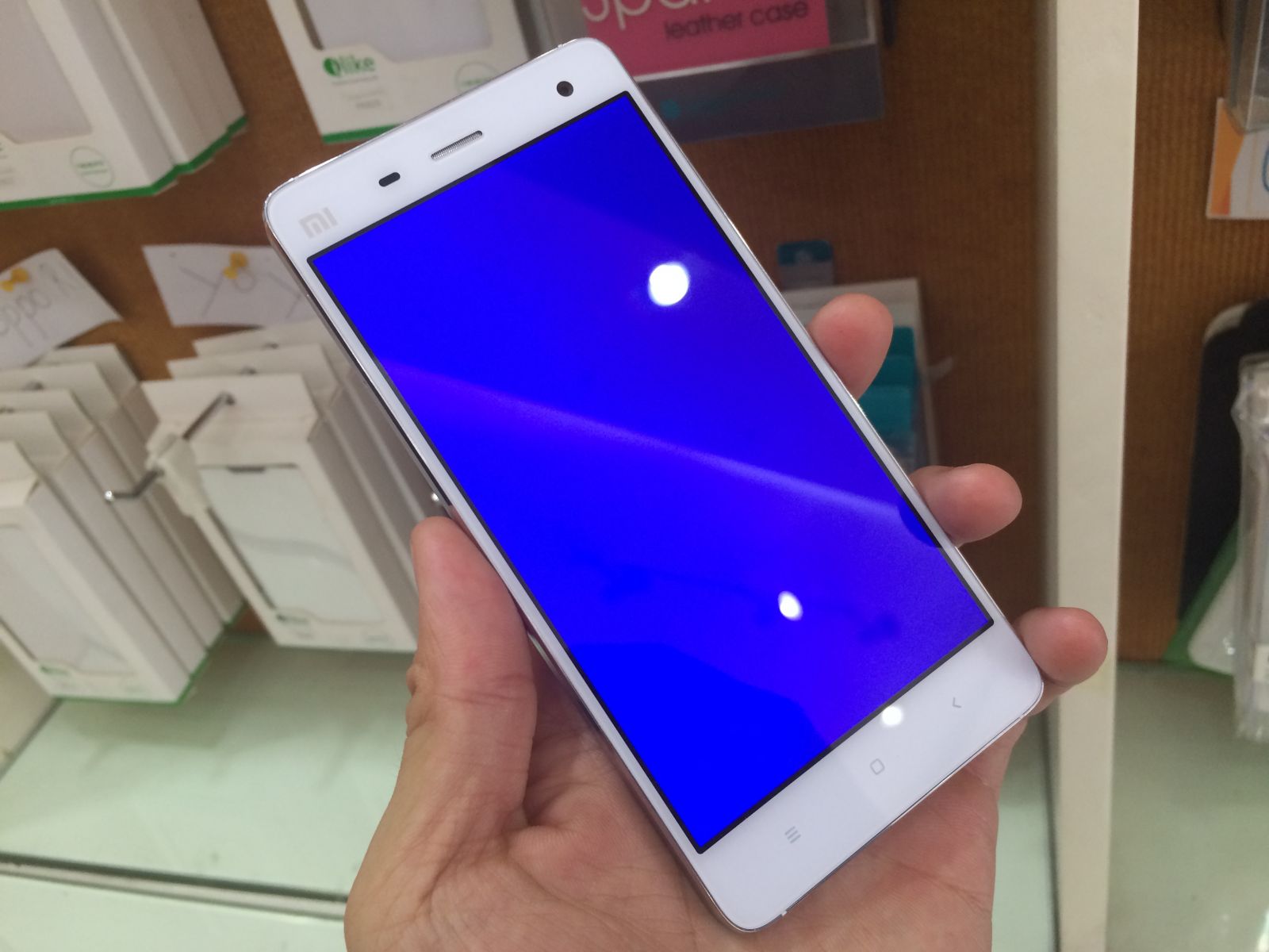 Các bạn sẽ kiểm tra hình thức bên ngoài của Mi4 để xem có xước xát hay không bởi có thể trong quá trình ship hàng máy bị va đập chèn đè, bị xước. Nhưng như vậy sẽ không còn là máy mới 100% nữa.