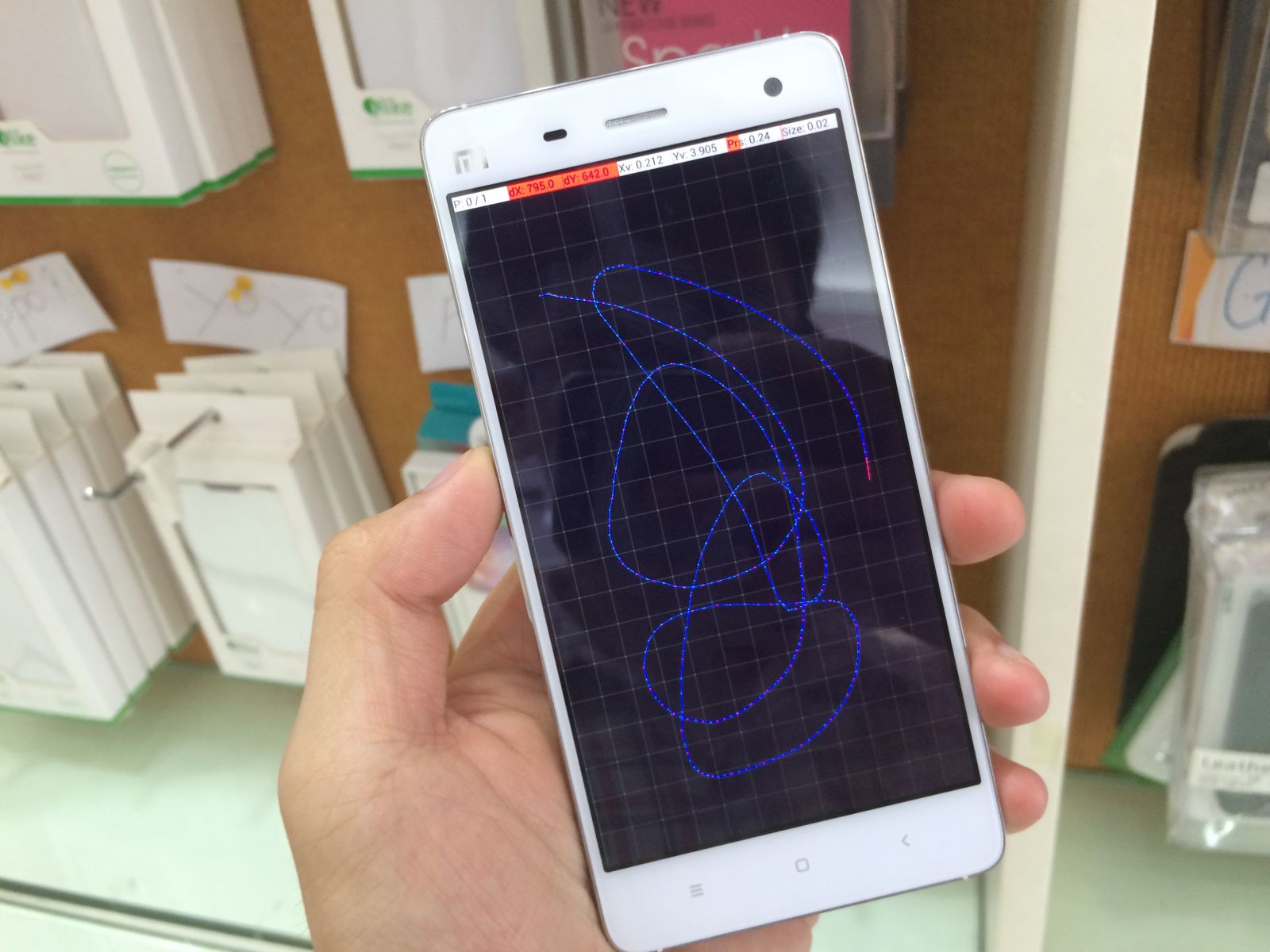 Để kiểm tra cảm ứng Xiaomi Mi4 thì các bạn sẽ vào phần 11. Touch Sensor và vẽ 1 cách tự nhiên trên màn hình nếu các đường cảm ứng bạn vẽ là lien tục không bị đứt đoạn thì cảm ứng hoàn toàn tốt. Để đơn giản hơn chúng ta có thể ra ngoài màn hình chính giữ vào 1 biểu tượng kéo khắp các vị trí nếu liên tục không bị dừng đột ngột thì cảm ứng không có vấn đề gì cả.