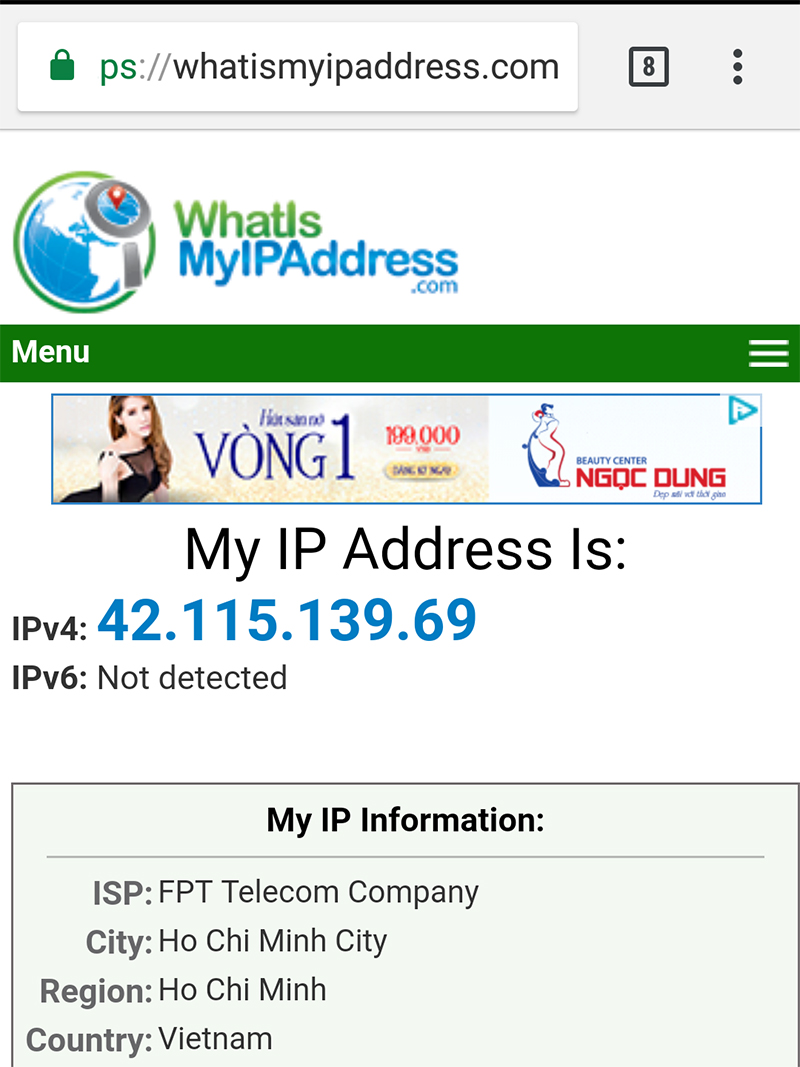 Bước 5: Sau khi hoàn tất, bạn cần kiểm tra lại một lần nữa xem thiết bị của mình có được đổi sang địa chỉ IP sang địa điểm khác hay không bằng cách truy cập vào đường dẫn sau: