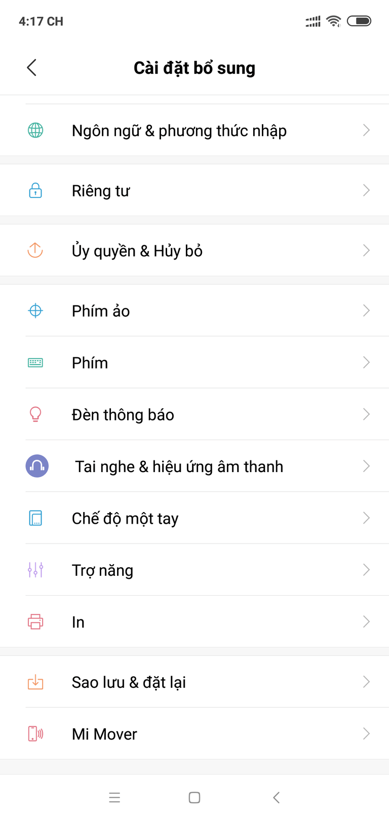 Cài đặt -> Cài đặt bổ sung -> Mi Mover