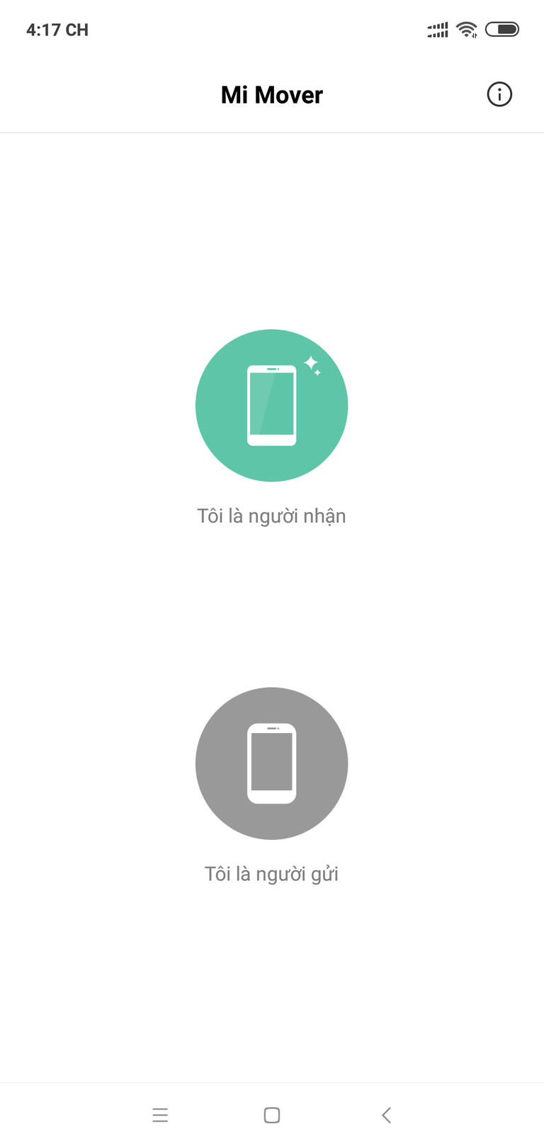 Trên thiết bị cũ thì chọn “I’m a sender”, thiết bị mới chọn “I’m a receiver”