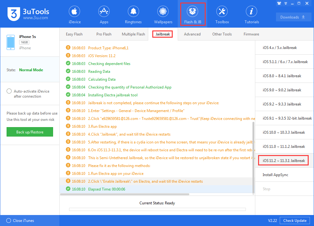 Hướng dẫn jailbreak iPhone, iPad iOS 11.2 - 11.3.1 bằng 3uTools