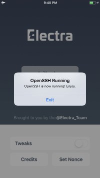 Electra sẽ cài Cydia và thông báo là OpenSSH đang chạy. Bấm chọn vào nút Exit để hoàn thành quá trình jailbreak!