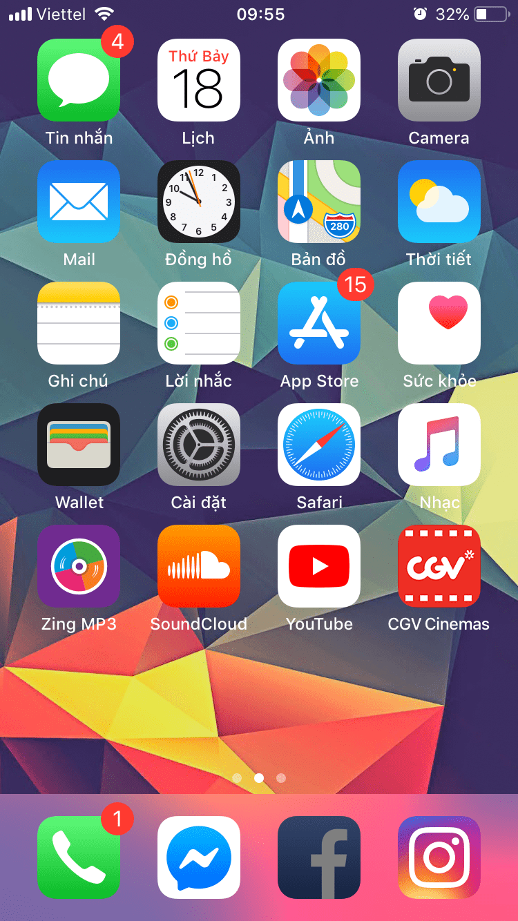 Sau đó bạn ấn Thêm và thoát ra màn hình chính sẽ thấy biết tượng Facebook bị tối lại