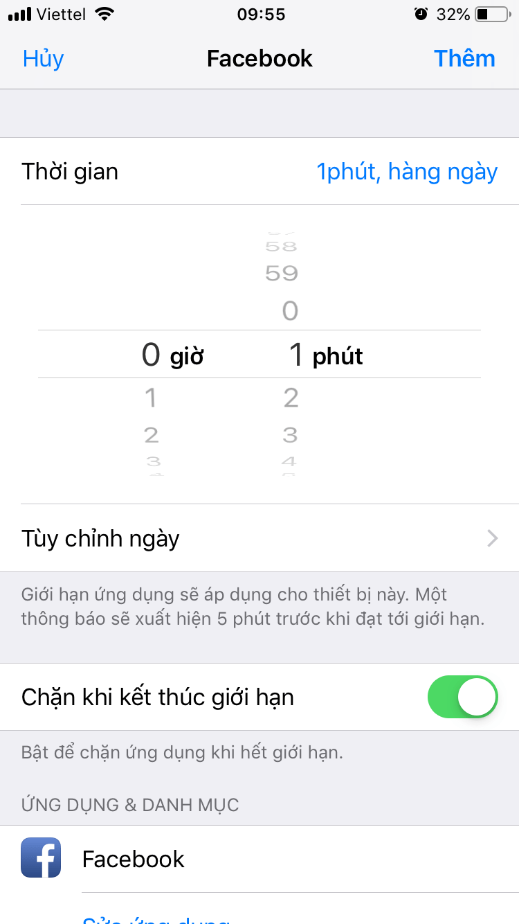 5.Sau đó chọn thêm giới hạn , ở đây mình chọn ứng dụng Facebook