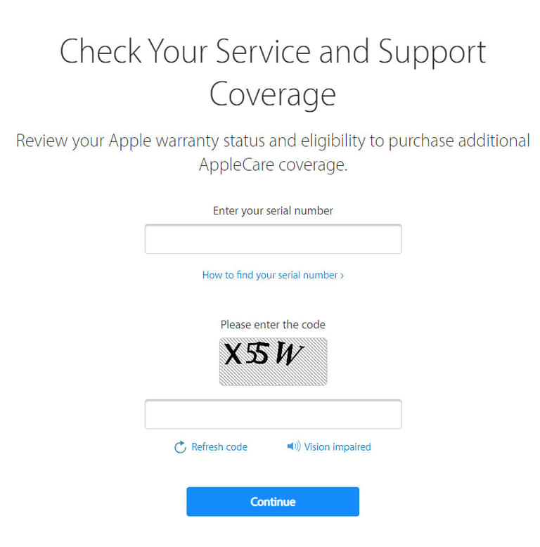 Để kiếm tra thông tin bảo hành của điện thoại apple, bạn truy cập vào trang https://checkcoverage.apple.com/ và điền số IMEI phía bên trên vào và chọn Continue. Sau đó một số thông tin về thiết bị của bạn cũng như thời gian bảo hành còn lại sẽ xuất hiện.