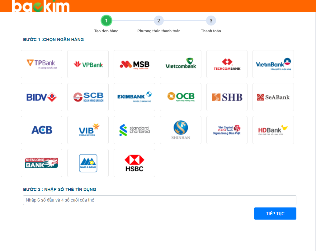 Bước 2: Màn hình thanh toán trả góp của Bảo Kim hiện ra.