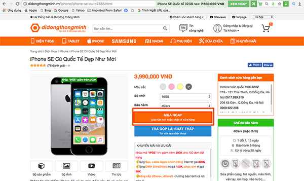 B3: Bấm vào phần mua ngay