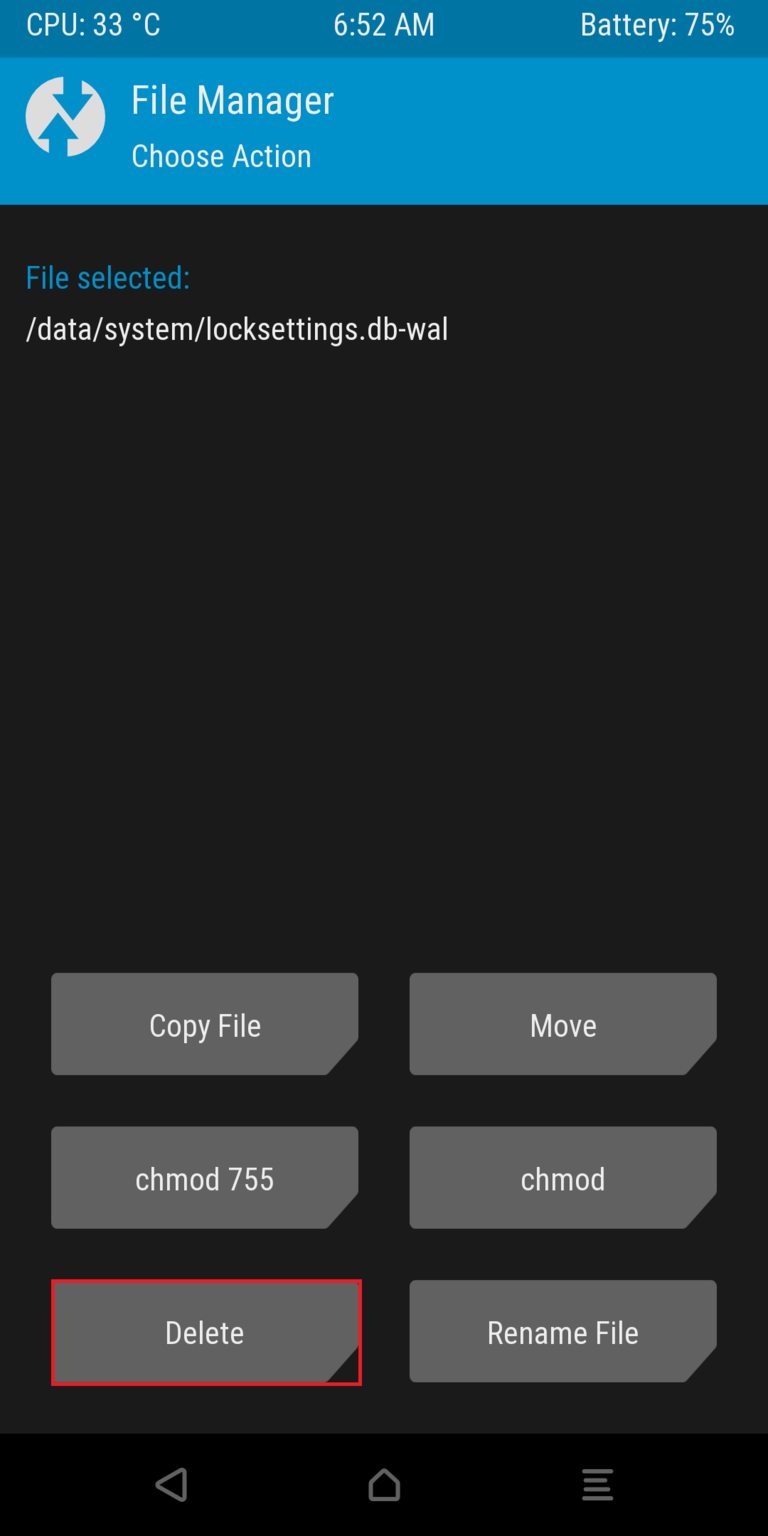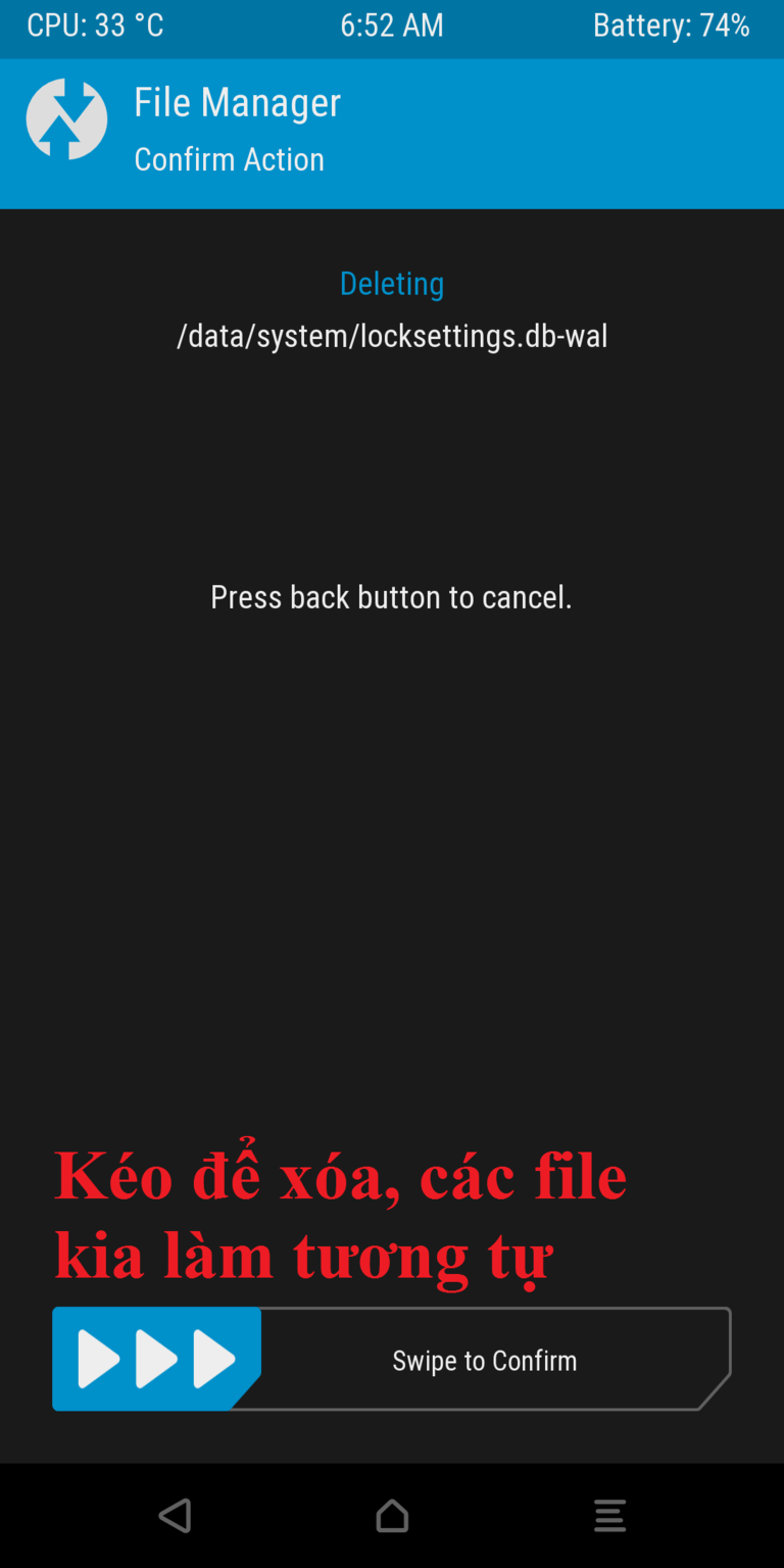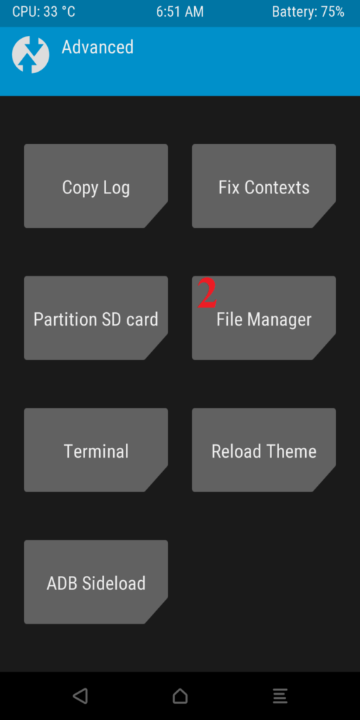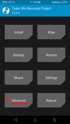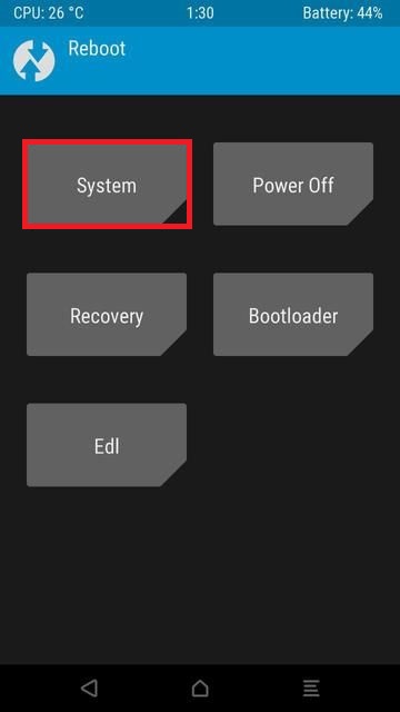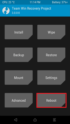 Sau khi xóa xong các file trên, trở lại giao diện chính của TWRP và reboot máy
