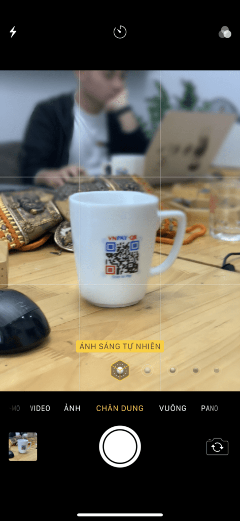 Bước 1: Khởi động máy ảnh trên điện thoại > Chọn vào chế độ chụp chân dung (Portrait Mode) và chụp một tấm bất kỳ.