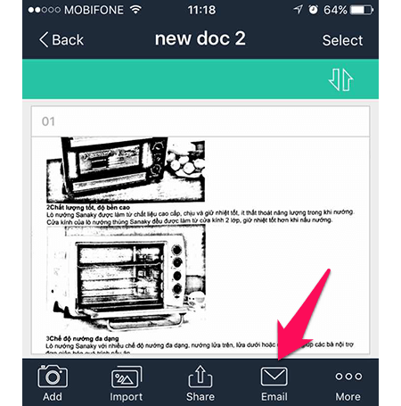 - Bây giờ bạn đã có một hình scan hoàn chỉnh của tài liệu, có thể gửi mail ngay hoặc lưu lại dưới dạng file PDF.