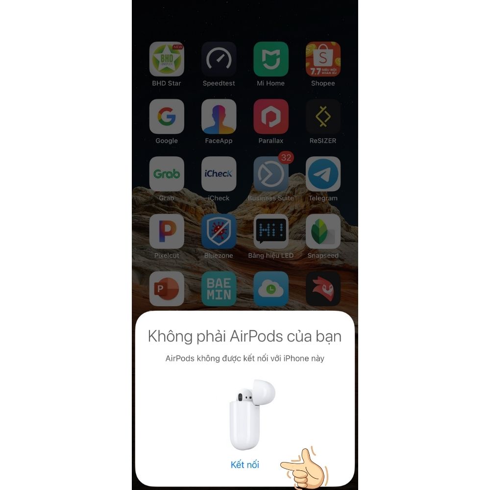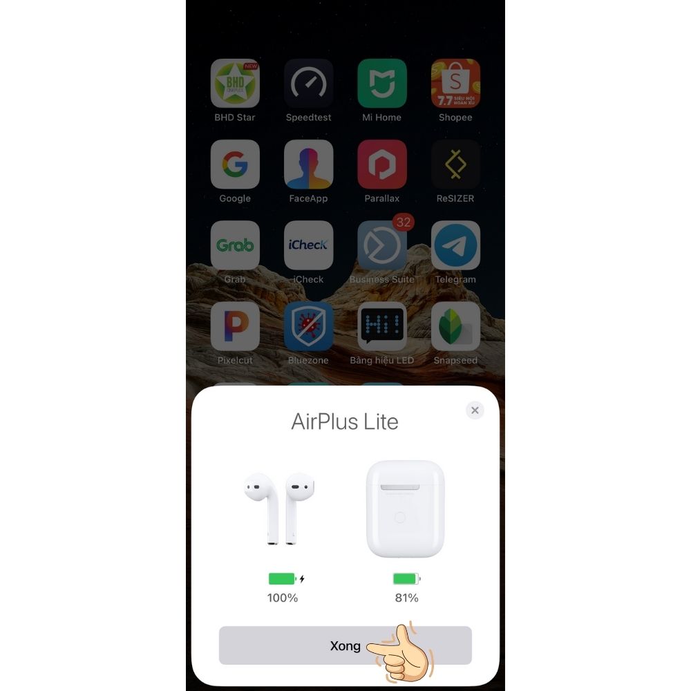Sau đó bạn mở nắp hộp đựng AirPlus Lite ra (Tai nghe vẫn để trong hộp) và để gần thiết bị, lúc này một thông báo kết nối sẽ hiển thị trên màn hình điện thoại iPhone, iPad của bạn và nhấp vào "Kết Nối".