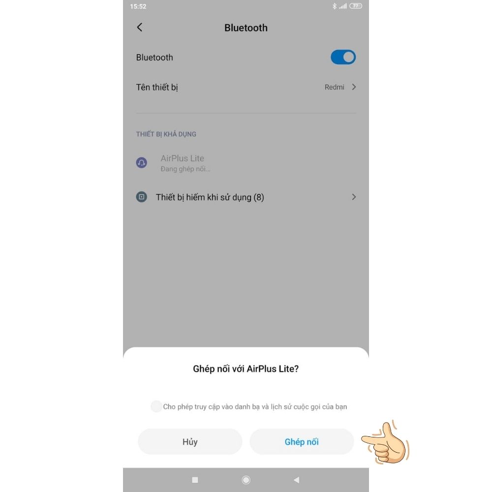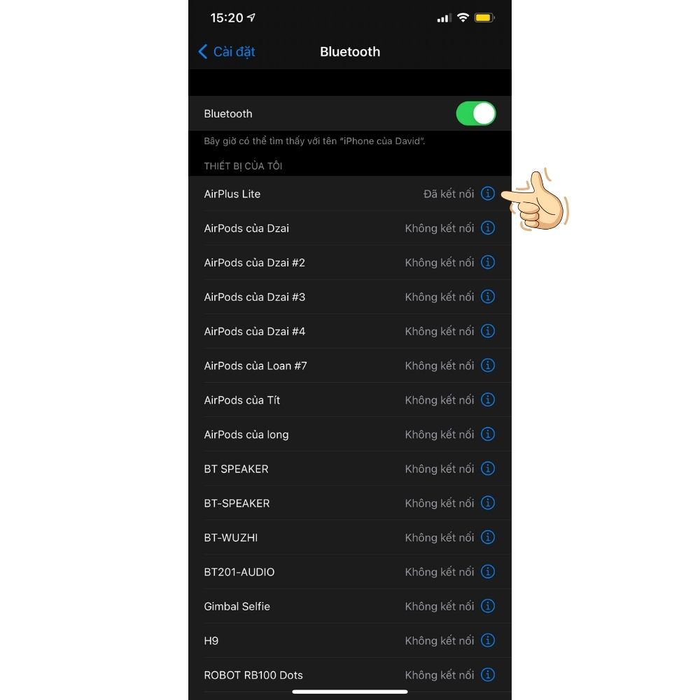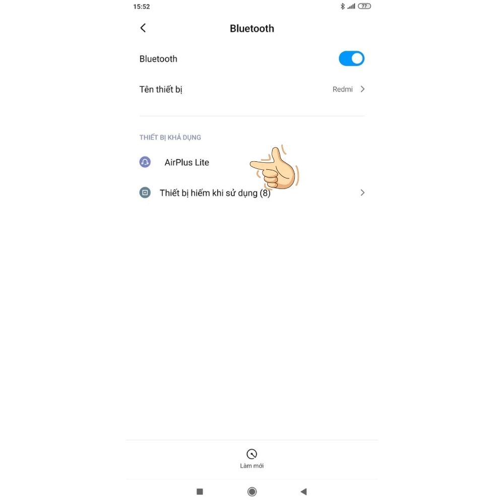 Khi máy tìm thấy tai nghe. Nhấn chọn tai nghe AirPlus Lite
