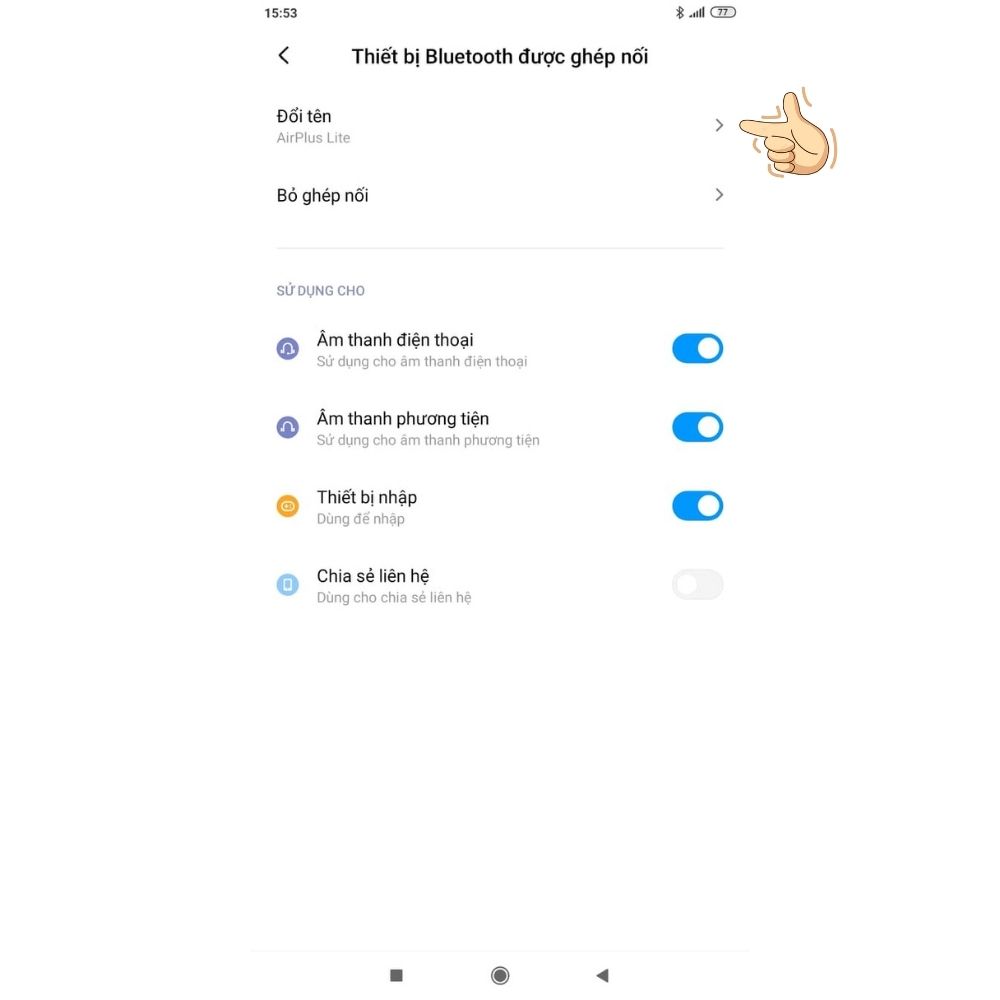 Với hệ điều hành Android bạn chỉ có thể đổi tên tai nghe chứ không chọn được các tính năng của tai nghe