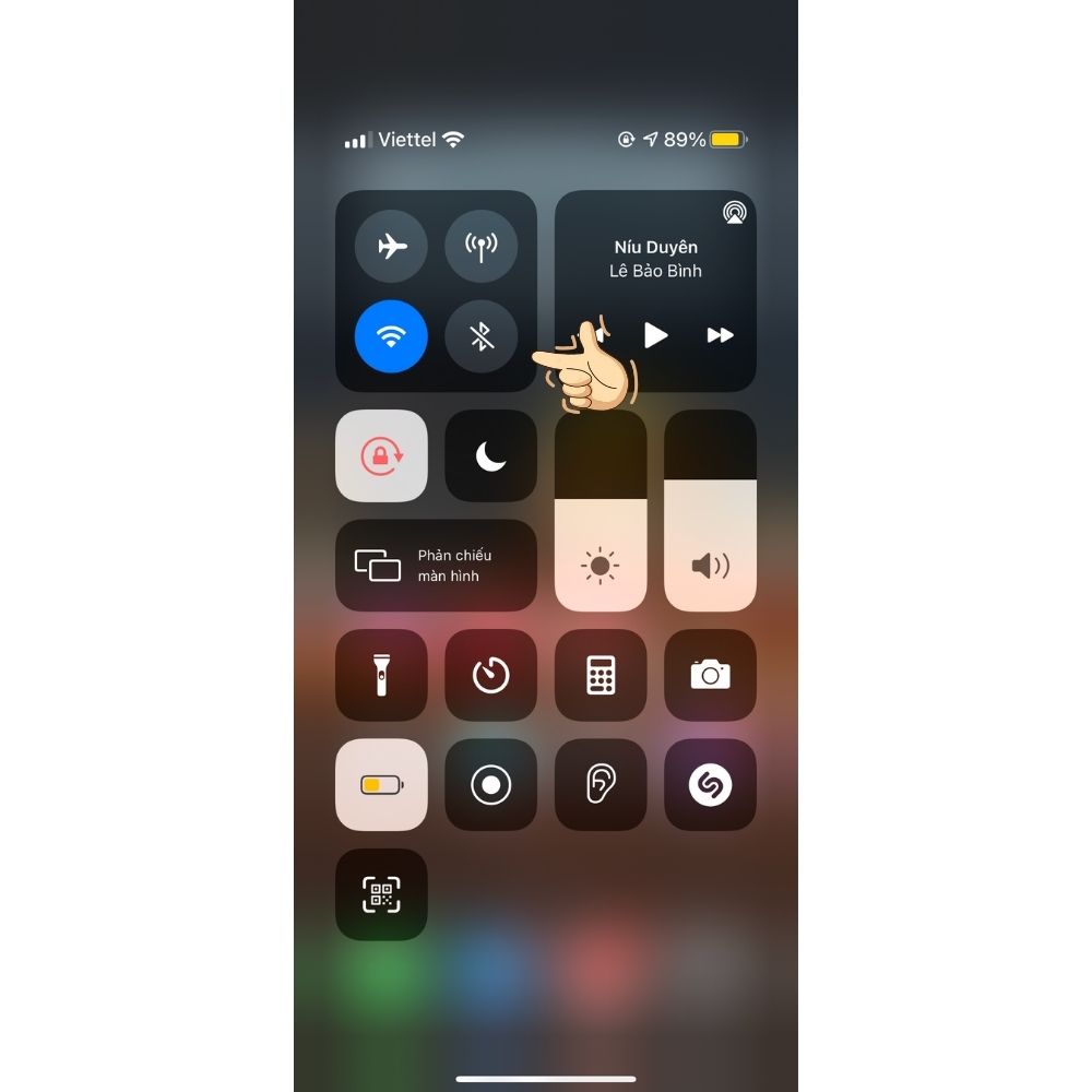 Đầu tiên bạn vuốt thanh trung tâm điều khiển xuống và bật Bluetooth nếu chưa bật.
