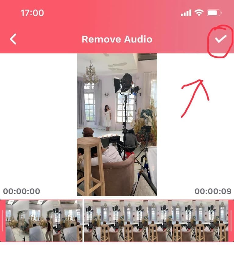 Bước 3. Phần mềm sẽ cho phép các bạn chọn độ dài ngắn video hoặc giữ độ dài nguyên bản bằng 2 thanh màu hồng phía dưới, khi đồng ý các bạn chỉ cần bấm vào dấu tick góc trên bên phải để phần mềm bắt đầu xử lý tách tiếng ra khỏi video.