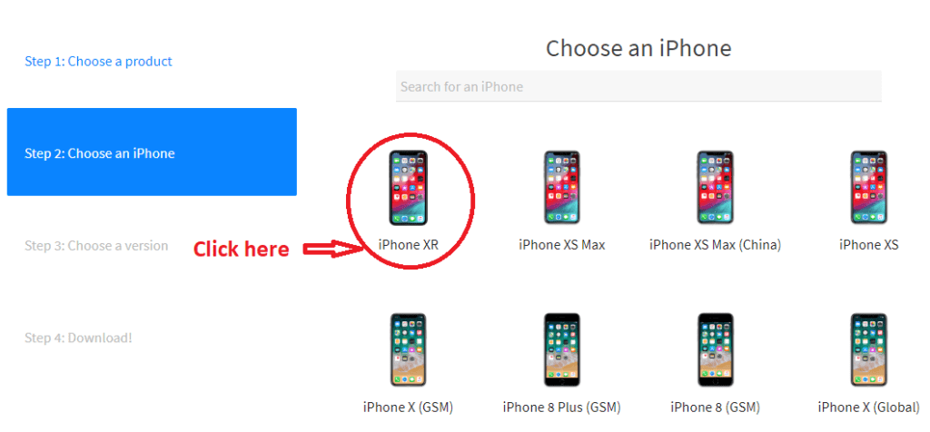 Chọn iPhone Xr để download firmware cho sản phẩm iPhone Xr