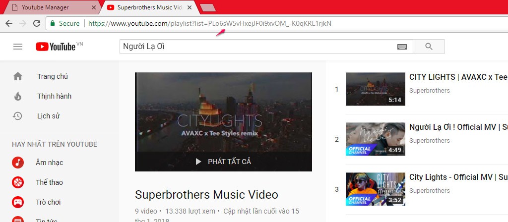 - Get download link from Playlist ID: Hãy click mục này sau đó dán IURL hay ID của video vào mục Playlist ID. Lấy ID như hình, sau từ khóa list=: