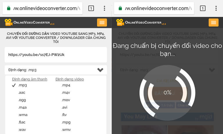 Online Video Converter (chuyển đổi video trên YouTube thành file MP3):