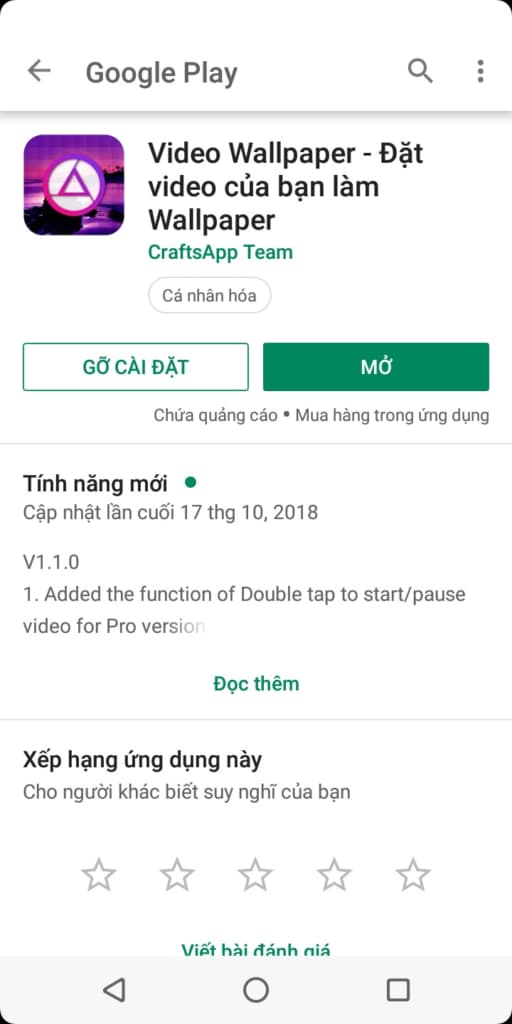 B1: các bạn vào CH play tải phần mềm “hình nền video”