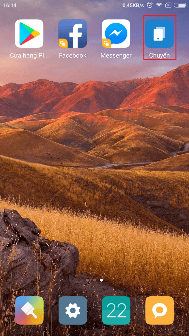 Bước 3: Sao khi đặt mật khẩu xong chúng ta hoàn thành việc tạo không gian thứ hai cho Xiaomi. Lúc này trên màn hình của 2 không gian xuất hiện Icon “Chuyển” . Chúng ta dùng nó để di chuyển qua lại giữ 2 không gian