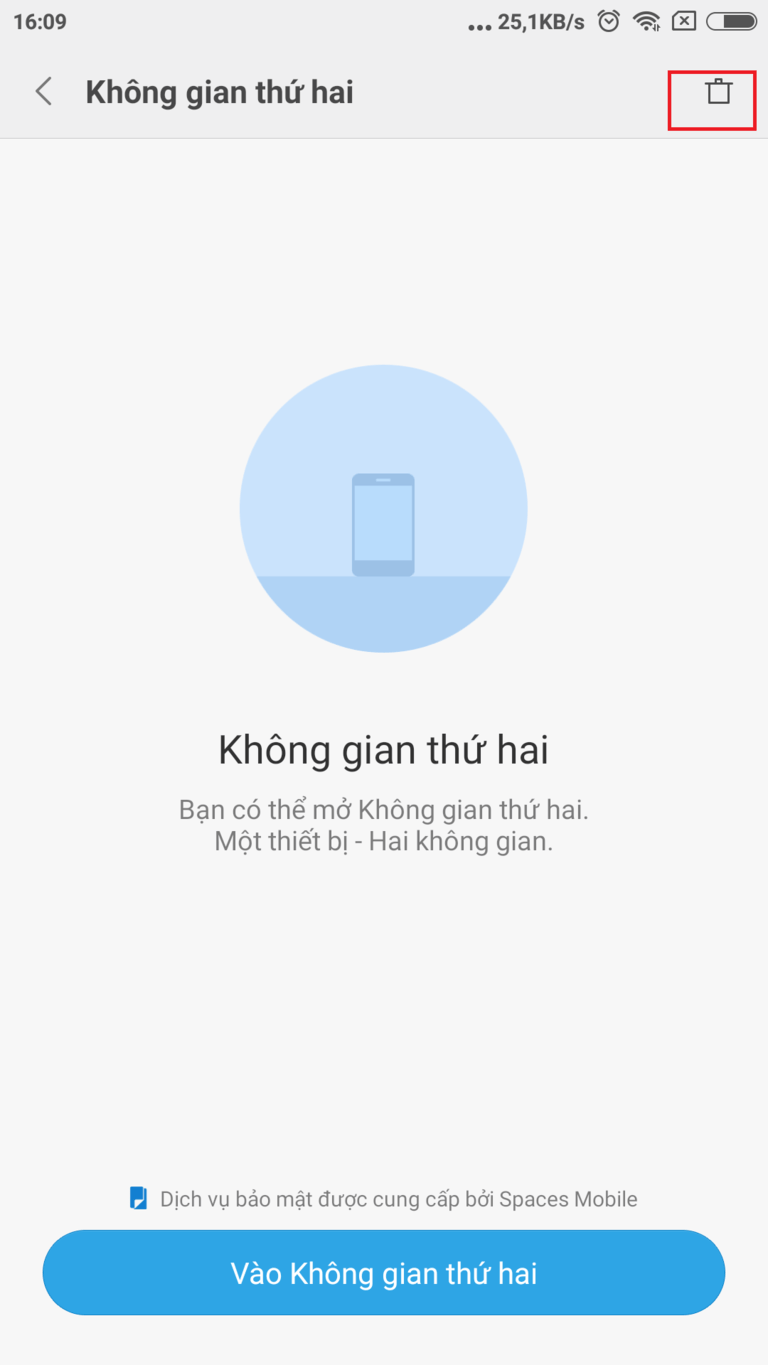 Nếu bạn không muốn dùng 2 không gian trong 1 điện thoại nữa thì chúng ta tiến hành xóa như sau: