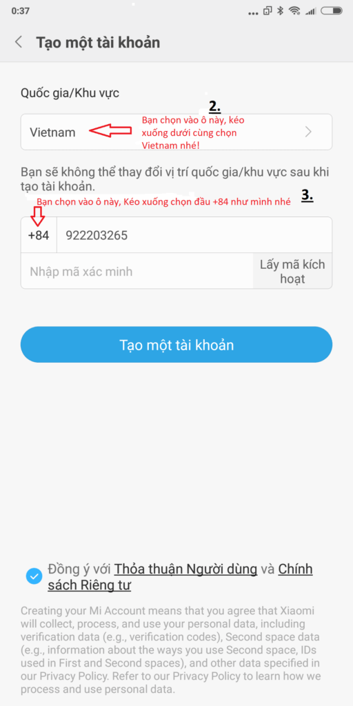- Bước 1: Bạn tạo tài Mi Account nhé ( có thể tạo trên điện thoại cho tiện)
