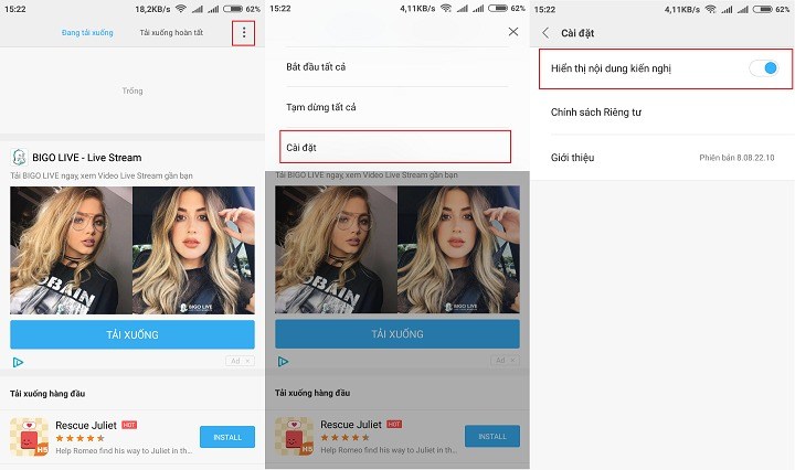 Tắt quảng cáo trong quét ứng dụng mới tải về