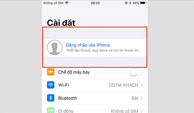 – Cách 1: Mở cài đặt trên iphone, thông tin icould sẽ hiện lên ngay trên đầu phần cài đặt