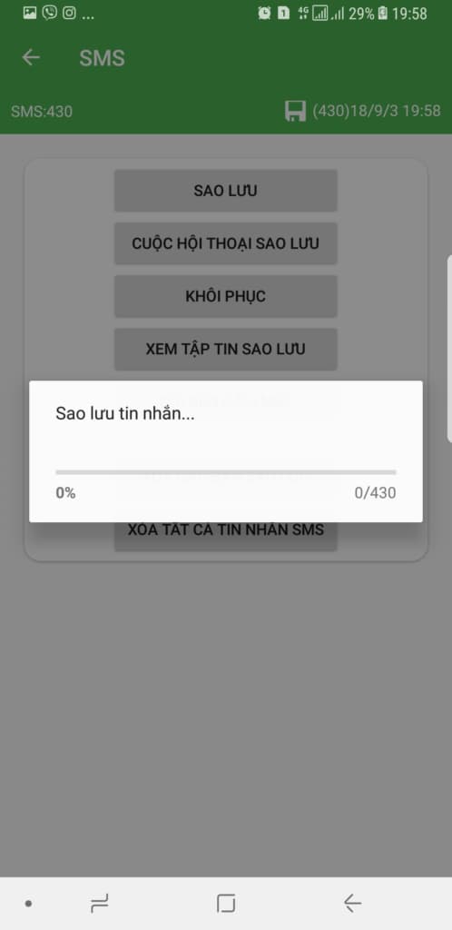 Phần mềm sẽ bắt đầu quá trình backup tin nhắn ngay lập tức, quá trình này diễn ra rất nhanh.