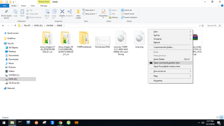 - Shift + Right-click để mở CMD. Trong cmd nhập lệnh: fastboot devices Để kiểm tra xem đã nhận điện thoạt trên máy tính chưa