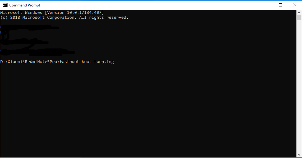 - Flash TWRP và boot vào TWRP: Trên CMD gõ tiếp 2 lệnh sau: