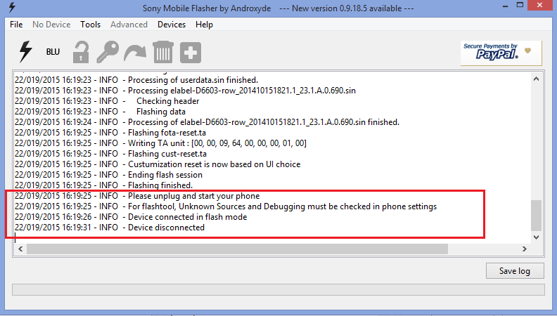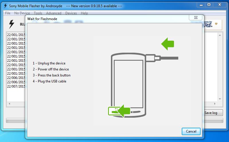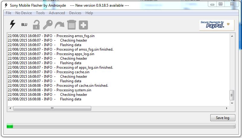 - Bước 4 : Khi làm bước trên xong ta sẽ đợi máy load rom đó và sau khi xong thì Flashtool sẽ thông báo. Khi đó các bạn tắt máy hẳng rồi đồng thời giữ nút Volume(-) và cắm cáp vào máy tính. Khi bạn cắm lần đầu nó sẽ nhận Driver điện thoại thì các bạn đợi cho phần mềm nhận xong Driver và rút điện thoại ra bắt đầu lại từ Bước 3
