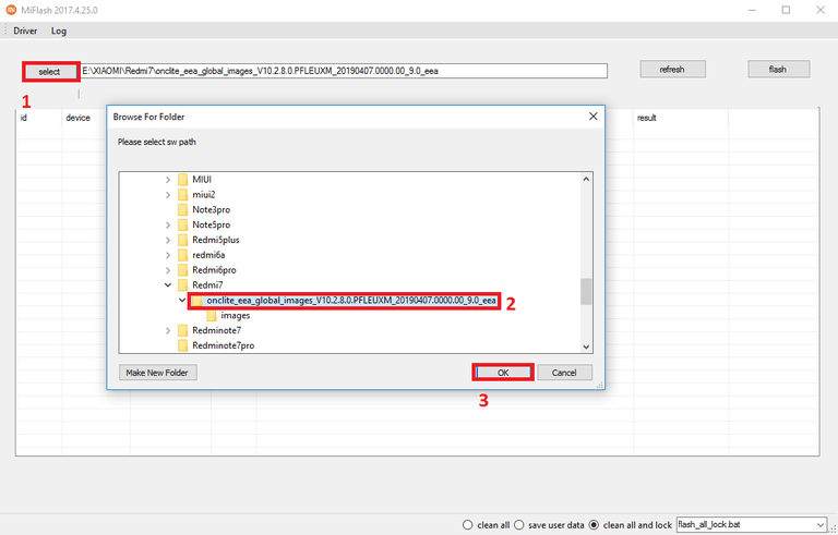 – Mở Mi Flash lên và chọn tới bản rom như hình dưới