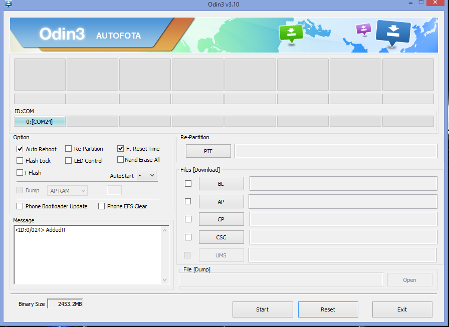 3. Đưa điện thoại về Download Mode : Tắt nguồn bấm và giữ 3 phím Vol – , Home và Power khi hiện ra bảng chữ Nhật thả 3 phím ra và bấm tiếp Vol +