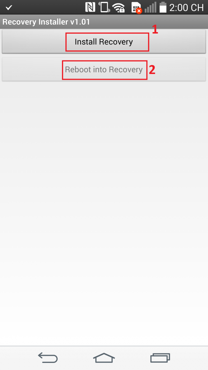 b2: Cài file Recovery vào máy và mở ứng dụng recovery đó lên và bấm vào Install Recovery , Sau khi máy báo cài thành công thì bấm Reboot into Recovery: