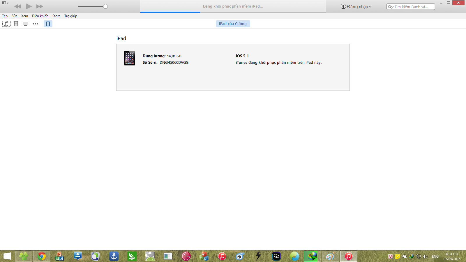– Bấm OK rồi bấm Resore để iTunes bắt đầu tiến hành khôi phục thiết bị…