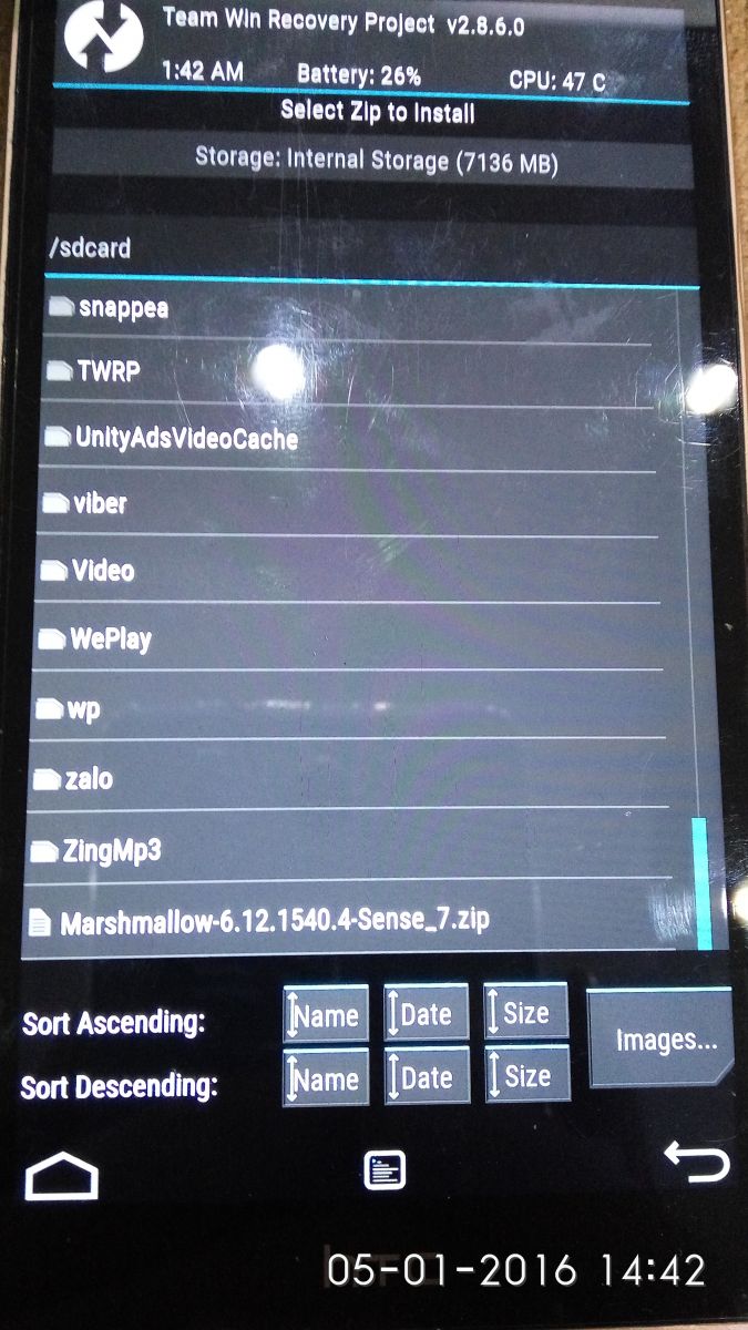 ROM : Marshmallow-6.12.1540.4-Sense_7.zip Tải về copy vào bộ nhớ máy