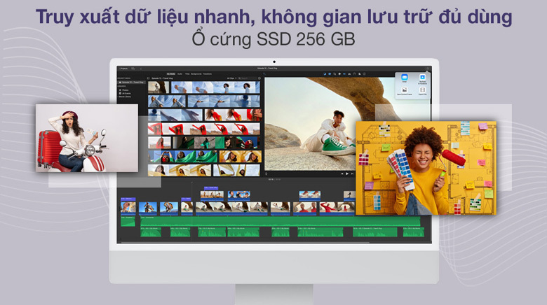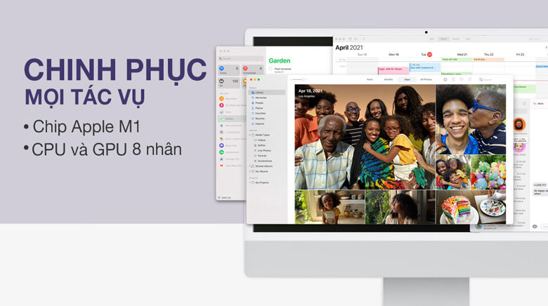 Kết hợp với con chip Apple M1 là bộ nhớ RAM 16GB đem lại khả năng đa nhiệm tốt, có thể khởi chạy những ứng dụng nặng đòi hỏi tiêu tốn nhiều tài nguyên, sử dụng trình duyệt web cho phép mở cùng lúc nhiều tab khác nhau, chỉnh sửa, render video 4K cũng không phải là vấn đề. Với đại đa số người dùng thì Apple iMac M1 2021 Z12Q0004Q có hiệu năng dư thừa đối với nhu cầu sử dụng thông thường.