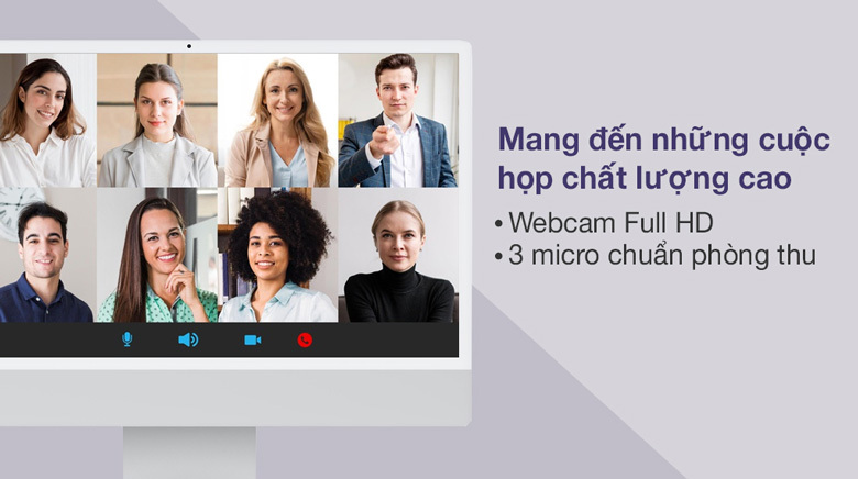 Webcam của Apple luôn được đánh giá tốt, iMac 4.5k được trang bị một camera Face Time có độ phân giải HD 1080p đem lại chất lượng hình ảnh rõ nét, thu sáng tốt hơn giúp người dùng thoải mái, tự tin về hình ảnh, kết hợp với 3 micro chuẩn chất lượng phòng thu đem lại các cuộc trò chuyện, hội họp trực tuyến có chất lượng cao, hình ảnh sắc nét, âm thanh rõ ràng.