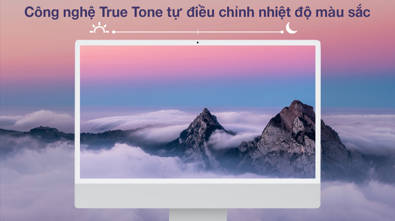 Màn hình được trang bị công nghệ True Tone giúp nhận diện được ánh sáng và màu sắc xung quanh để tự động hiệu chỉnh màu sắc hiển thị trên màn hình cho phù hợp với môi trường xung quanh giúp mắt người dùng được thoải mái không bị chói, đau, nhức mắt. Ngoài ra, bề mặt của màn hình iMac Z12Q0004Q còn được hãng tráng một lớp chống loá ánh sáng để nâng cao trải nghiệm sử dụng ở các vị trí đặt cạnh nguồn sáng.