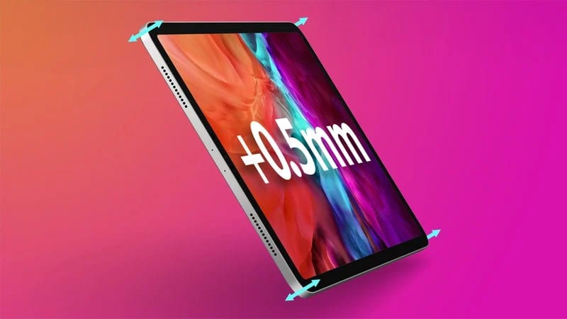 Với độ dày 6,4mm dày hơn 0,5mm so với iPad Pro 12,9 inch hiện tại chỉ 5,9mm. Sự thay đổi về độ dày có thể là do sự tích hợp của màn hình LED mini, một tính năng sẽ chỉ có ở mẫu 12,9 inch. Các tin đồn trước đây đã chỉ ra rằng ống kính máy ảnh của các mẫu iPad Pro mới sẽ nhô ra ít hơn và sẽ có một số thay đổi nhỏ đối với kích thước nhô lên của máy ảnh.