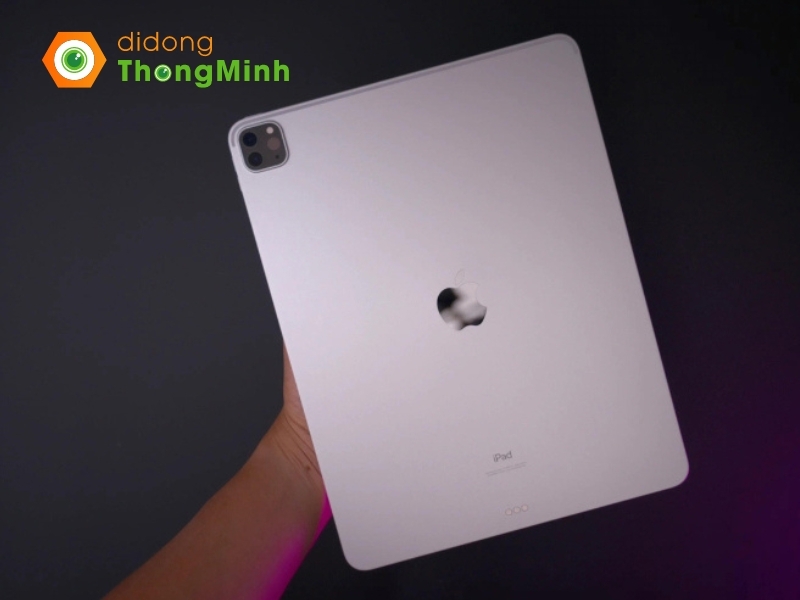 iPad Pro 12.11 inch 2022 sở hữu vẻ ngoài quen thuộc, thiết kế điển hình của dòng iPad. Các chi tiết được hoàn thiện với độ chính xác cao, cạnh viền vuông vức cùng 4 góc bo cong mềm mại tạo cảm giác cao cấp. Mặt lưng đi kèm model camera hình vuông kiểu dáng tương tự thế hệ tiền nhiệm.