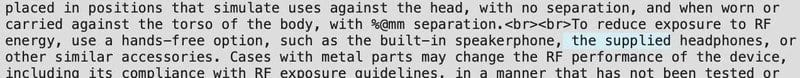 “Để giảm thiểu ảnh hưởng của sóng vô tuyến RF, hãy sử dụng tính năng hands-free, như là loa ngoài, tai nghe và các phụ kiện khác”.
