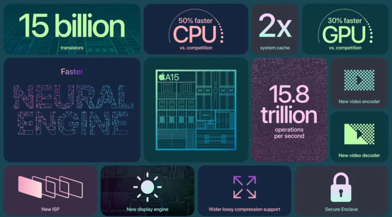 | Chip xử lý | Apple A15 Bionic 6 nhân |